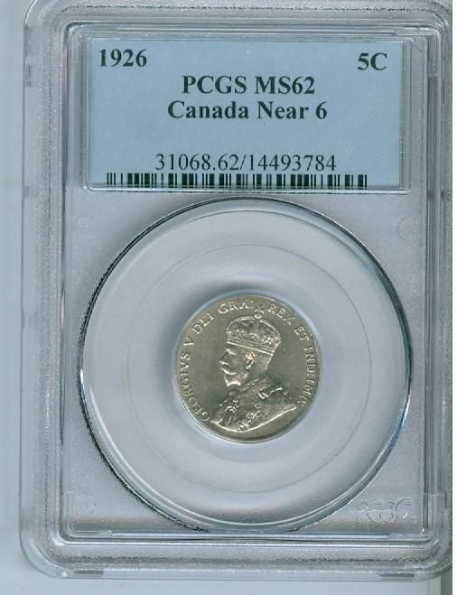 1926 5¢ Near 6 PCGS MS62. A decent example.
