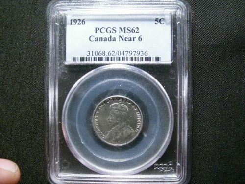 1926 5¢ Near 6 PCGS MS62. An nice clean example with lots of lustre.