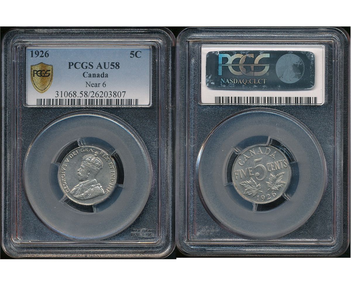 1926 5¢ Nr PCGS AU58. Bright.