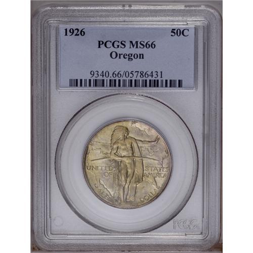 1926 50C Oregon MS66 PCGS. Visually enticing lime-gree 1926[50C] Oregon MS66 PCGS.