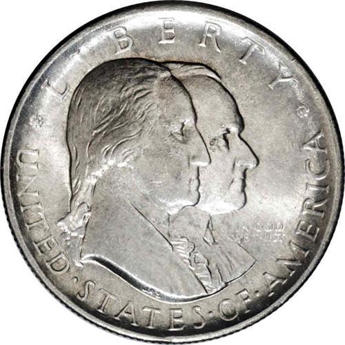 <B>1926<50C> Sesquicentennial MS63 NGC.</B></I> Brilliant and satiny. A scattering of tiny contact marks on Washington's cheek accounts for the assigned grade. Issued to commemorate the 150th anniversary of American independence.