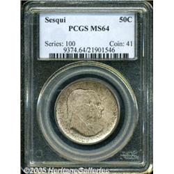 <B>1926 50C Sesquicentennial MS64 PCGS.</B></I> Lustrous surfaces are bathed by speckled olive-green patina on the obverse, while the reverse features broader splashes of this toning. A few light contact marks limit the grade.
