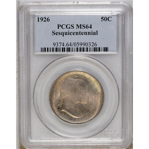 1926 50C Sesquicentennial MS64 PCGS. Strong luster exp