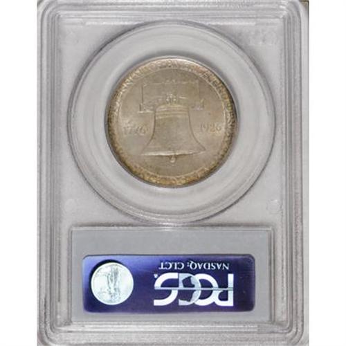 <B>1926 50C Sesquicentennial MS64 PCGS. CAC.</B></I> A softly lustrous representative of this conditionally challenging issue, well struck with degrees of gold and cloud-gray patina over each side. Light marks on Washington's cheek preclude Gem status.<BR><BR><b>Shipping:</b> Coins & Currency (<a target="_blank" href="http://www.heritageauctions.com/common/shipping.php">view shipping information</a>)