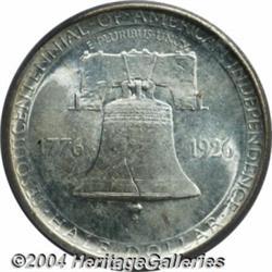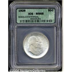 <B>1926<50C> Sesquicentennial MS65 ICG.</B></I> Untoned save for delicate golden-gray overtones, the surfaces are uncommonly abrasion-free for the type. Effulgent mint luster provides swirling cartwheel effects that are fully appreciable as the surfaces rotate under the light. A tiny spot over the right (facing) Liberty Bell support is mentioned solely for accuracy. <BR><BR><B>Important notice:</B> Heritage usually auctions material at the rate of 200-250 lots per hour. On some occasions eBay Live bid software or the Internet may not be able to keep up with the pace of the auction. We recommend placing a realistic absentee bid now as insurance to avoid disappointment. Occasionally the auctioneer may eliminate or reject an eBay Live bid, and the auctioneer may also reopen a lot after the close of the eBay live bidding (usually because we missed an audience bid), and may reject your bid even if it shows you as the winning bidder. By bidding via eBay Live, you agree that Heritage may award the lot to another bidder at its sole discretion under the circumstances described above or any other reasonable circumstances. Since eBay bids are not shown to us until we open the lot on the floor, we treat those bids just like floor bids. In most cases the floor responds before the eBay bid is presented to us, due to Internet lag time, so for consistency we have made it a policy that floor bids are always considered first over tie eBay live bids. Also please note that all Heritage lots purchased through eBay Live carry a 20% Buyer's Premium. Please make sure you read the Terms and Conditions before you bid. </span></font></tr></table></td></tr></table>