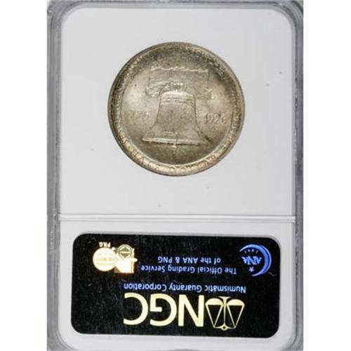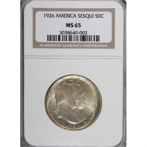 <B>1926 50C Sesquicentennial MS65 NGC.</B></I> The conditional scarcity of the Sesquicentennial half dollar was slowly recognized by collectors and dealers. About 25 years ago, dealers raised their buy prices for "real Gem" coins, and found there were virtually none to be had. Prices rose and rose, then third-party grading came along, and soon published population figures confirmed the difficulty of this coin in Gem condition. The luster on this piece is exceptional and each side is covered with even golden-rose toning.<BR><BR><b>Shipping:</b> Coins & Currency (<a target="_blank" href="http://www.heritageauctions.com/common/shipping.php">view shipping information</a>)