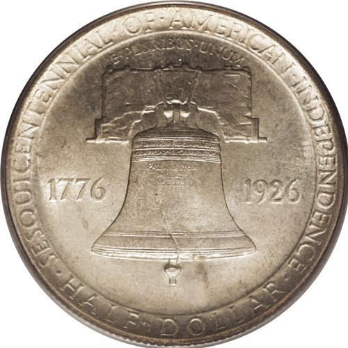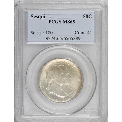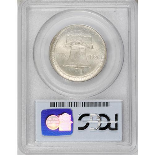<B>1926 50C Sesquicentennial MS65 PCGS.</B></I> Gems of this issue are widely known to be elusive, and anything finer is very rare. This appealing example has translucent golden-tan toning on the obverse and pale blue at the reverse periphery. The strike is adequate, though the usual softness is noted at the top of Washington's wig, and a small spot of deep toning is noted on Coolidge's forehead.<BR><BR><b>Shipping:</b> Coin/Currency (<a target="_blank" href="http://www.heritageauctions.com/common/shipping.php">view shipping information</a>)