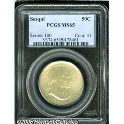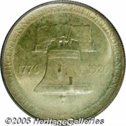 <B>1926 50C Sesquicentennial MS65 PCGS.</B></I> Pale champagne toning masks the satiny luster of this Gem example. The alert specialist will realize that this is a great opportunity, since Gem quality examples are seldom offered, and attractive examples are almost never encountered. The Sesqui Half Dollars are almost never seen with eye appeal. The present example is a desirable exception to this rule. It is sharply struck, with every individual letter in the Liberty Bell fully readable. Only seven finer examples of this issue have been certified by PCGS.