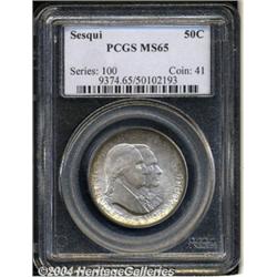 <B>1926<50C> Sesquicentennial MS65 PCGS.</B></I> Uncommonly abrasion-free for the issue, this originally preserved example displays soft silver-gray iridescence in the centers that yields to olive-russet shadings at the rims. A couple of insignificant ticks in the centers hardly inhibit the pleasingly lustrous, Gem quality sheen. <BR><BR><B>Important notice:</B> Heritage usually auctions material at the rate of 200-250 lots per hour. On some occasions eBay Live bid software or the Internet may not be able to keep up with the pace of the auction. We recommend placing a realistic absentee bid now as insurance to avoid disappointment. Occasionally the auctioneer may eliminate or reject an eBay Live bid, and the auctioneer may also reopen a lot after the close of the eBay live bidding (usually because we missed an audience bid), and may reject your bid even if it shows you as the winning bidder. By bidding via eBay Live, you agree that Heritage may award the lot to another bidder at its sole discretion under the circumstances described above or any other reasonable circumstances. Since eBay bids are not shown to us until we open the lot on the floor, we treat those bids just like floor bids. In most cases the floor responds before the eBay bid is presented to us, due to Internet lag time, so for consistency we have made it a policy that floor bids are always considered first over tie eBay live bids. Also please note that all Heritage lots purchased through eBay Live carry a 20% Buyer's Premium. Please make sure you read the Terms and Conditions before you bid.