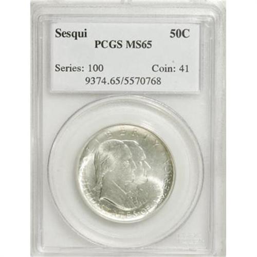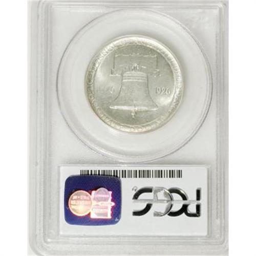 <B>1926 50C Sesquicentennial MS65 PCGS.</B></I> The surfaces of this carefully preserved Sesquicentennial piece are essentially brilliant with uncommonly strong luster. The devices show pleasing detail overall, though the portraits show a touch of softness on the hair. Challenging in Gem, this issue is rare any finer, with only seven better pieces graded by PCGS (9/07).<BR><I>From The Sterling Collection.</B></I><BR><BR><b>Shipping:</b> Coins & Currency (<a target="_blank" href="http://www.heritageauctions.com/common/shipping.php">view shipping information</a>)