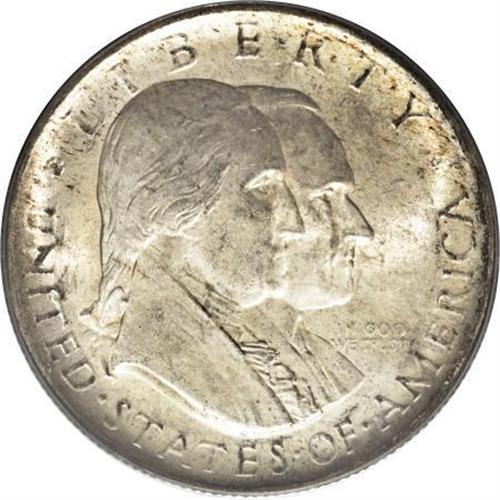 <B>1926 50C Sesquicentennial MS65 PCGS.</B></I> Lustrous silver-tan surfaces display russet and charcoal speckles at the obverse margins, and scattered over the reverse. An impressive strike sharpens the design elements, and both sides appear to lack significant marks. Difficult to acquire any finer, evidenced by PCGS having seen only eight higher-grade pieces.<BR><BR><b>Shipping:</b> Coins & Currency (<a target="_blank" href="http://www.heritageauctions.com/common/shipping.php">view shipping information</a>)