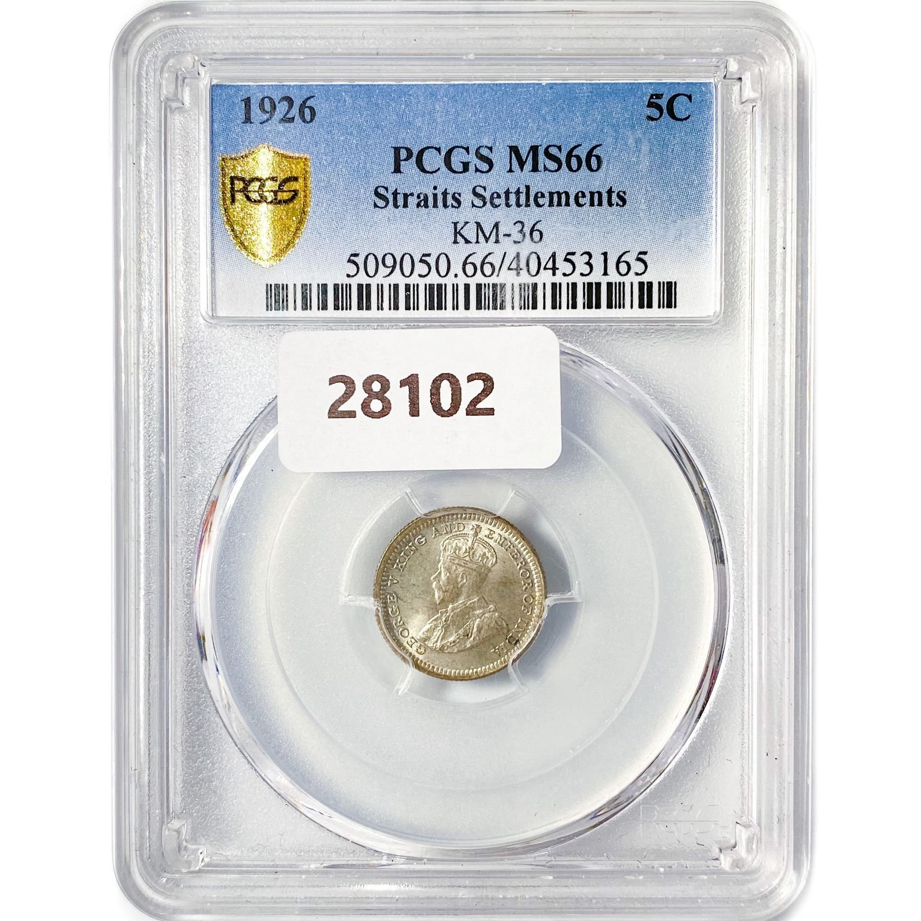 1926 5C .03oz Straits Settlements Silver PCGS MS66