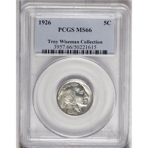<B>1926<5C> MS66 PCGS.</B></I> A lustrous piece with excellent detail. Pink and gold patina covers both sides, though a dark spot appears in the left reverse field.<BR><I>From The Troy Wiseman Collection.</B></I>