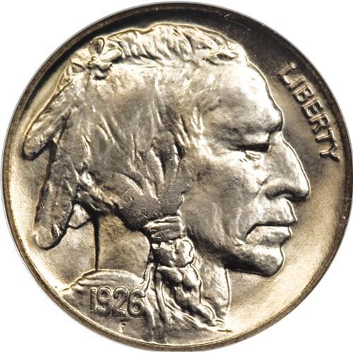 <B>1926 5C MS67 NGC.</B></I> Bright apricot patina and pleasing luster illuminate the well preserved surfaces. This piece is well struck on the legends and throughout the bison's head and shoulder. Only the upper braid of the Indian has less than meticulous definition, and even there the strike is better than often encountered. Population: 12 in 67, 1 finer (4/07).<BR><BR><b>Shipping:</b> Coins & Currency (<a target="_blank" href="http://www.heritageauctions.com/common/shipping.php">view shipping information</a>)