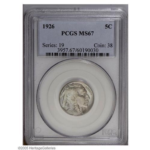 <B>1926<5C> MS67 PCGS.</B></I> Boldly struck with thick mint frost and ice-blue patina overlaying both sides. Traces of rose color are seen on the reverse. A true Superb Gem. Population: 20 in 67, 0 finer (9/05).