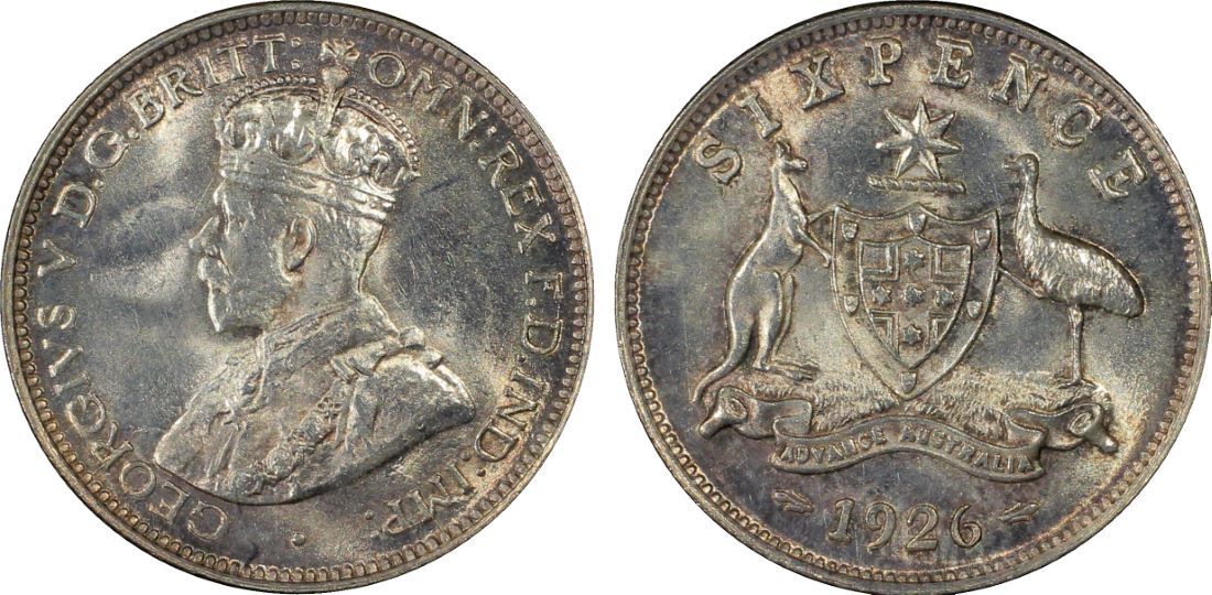 1926 Australian KGV Sixpence PCGS MS 64