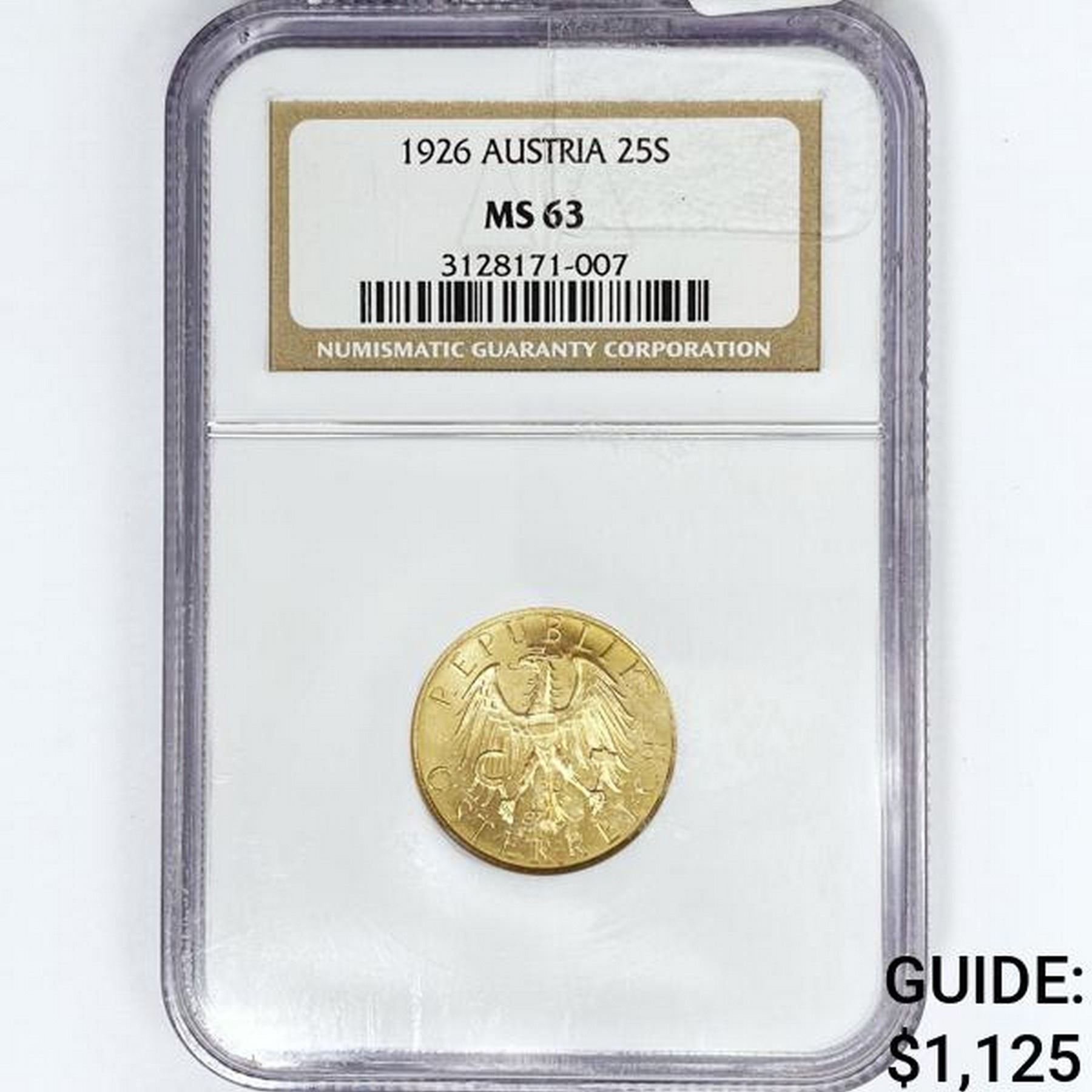 1926 Austria 25S .17oz Gold NGC MS63