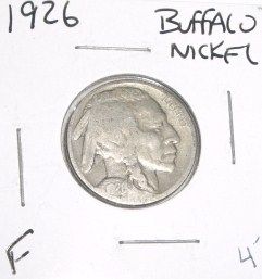 1926 BUFFALO NICKEL RED BOOK VALUE IS $4.00+ *NICE EARLY FINE GRADE NICKEL*!! NICKEL CAME OUT OF SAFE!! ***Coin, Currency & All Items Listed in this auction - Grades, Conditions and Values are not Safe Deposit Coins LLC Responsibilty. Grades, Condition and Values are determined by Consigner(s) & Buyers ONLY