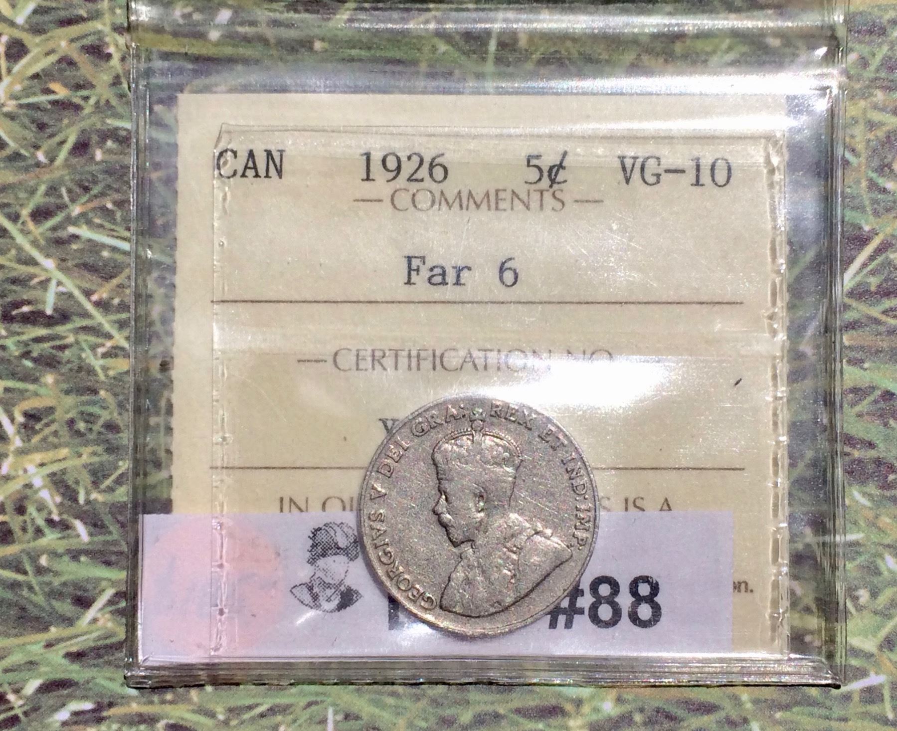 1926 CANADA 5 CENTS FAR 6 VARIETY ICCS VG-10