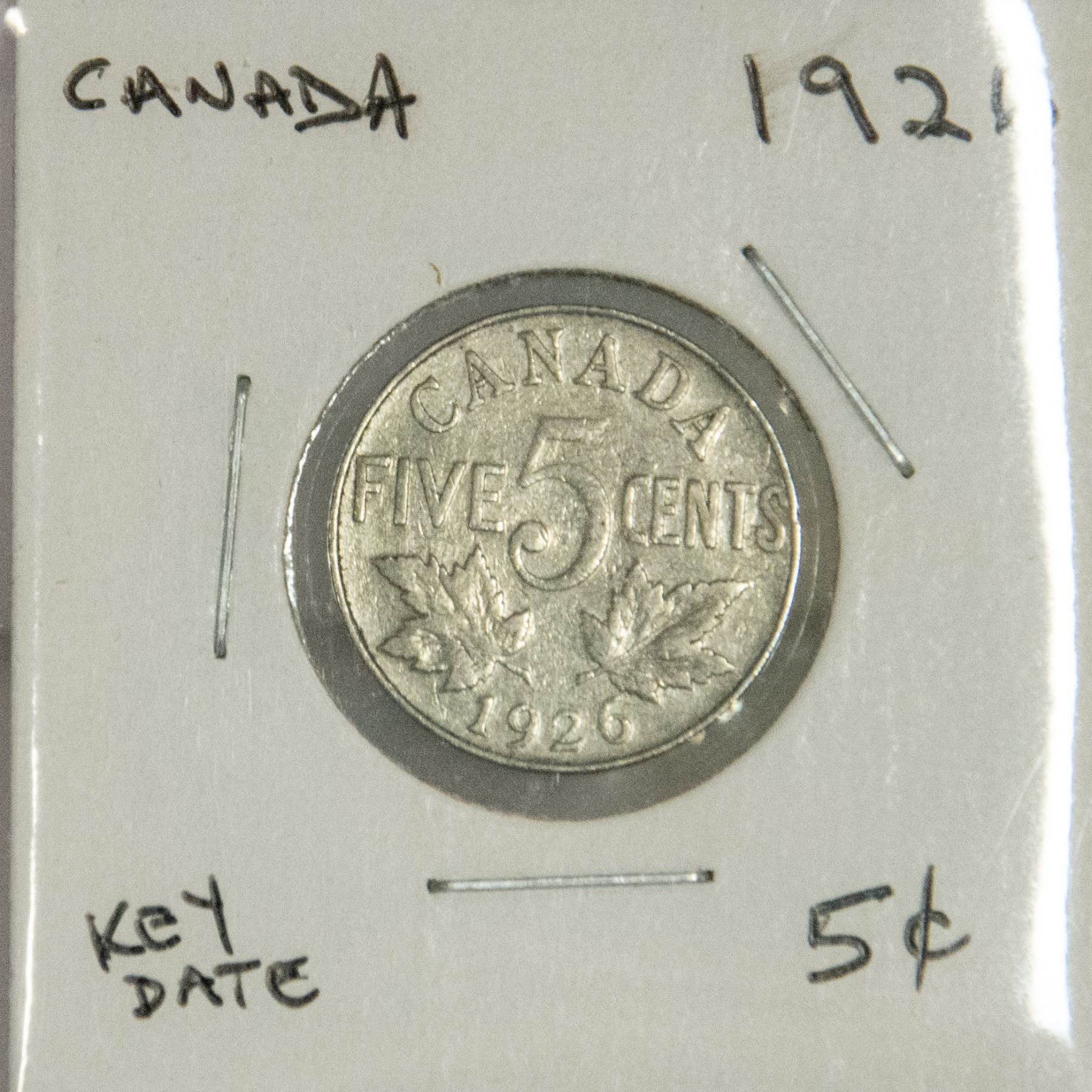 1926 CANADIAN FIVE CENT NICKEL COIN - KEY DATE