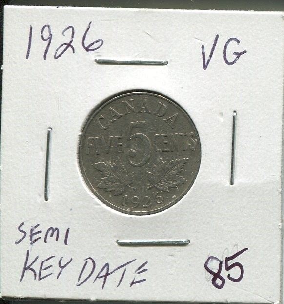 1926,Canadian 5 cent coin (KEY DATE),King George V