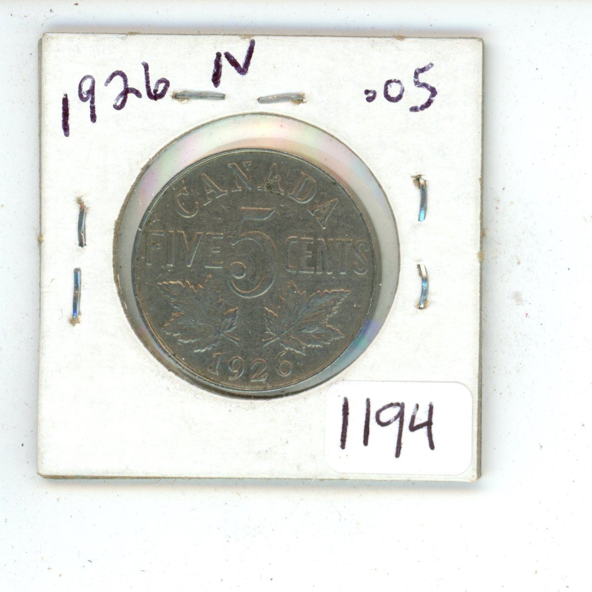 1926 Canadian 5 cent coin