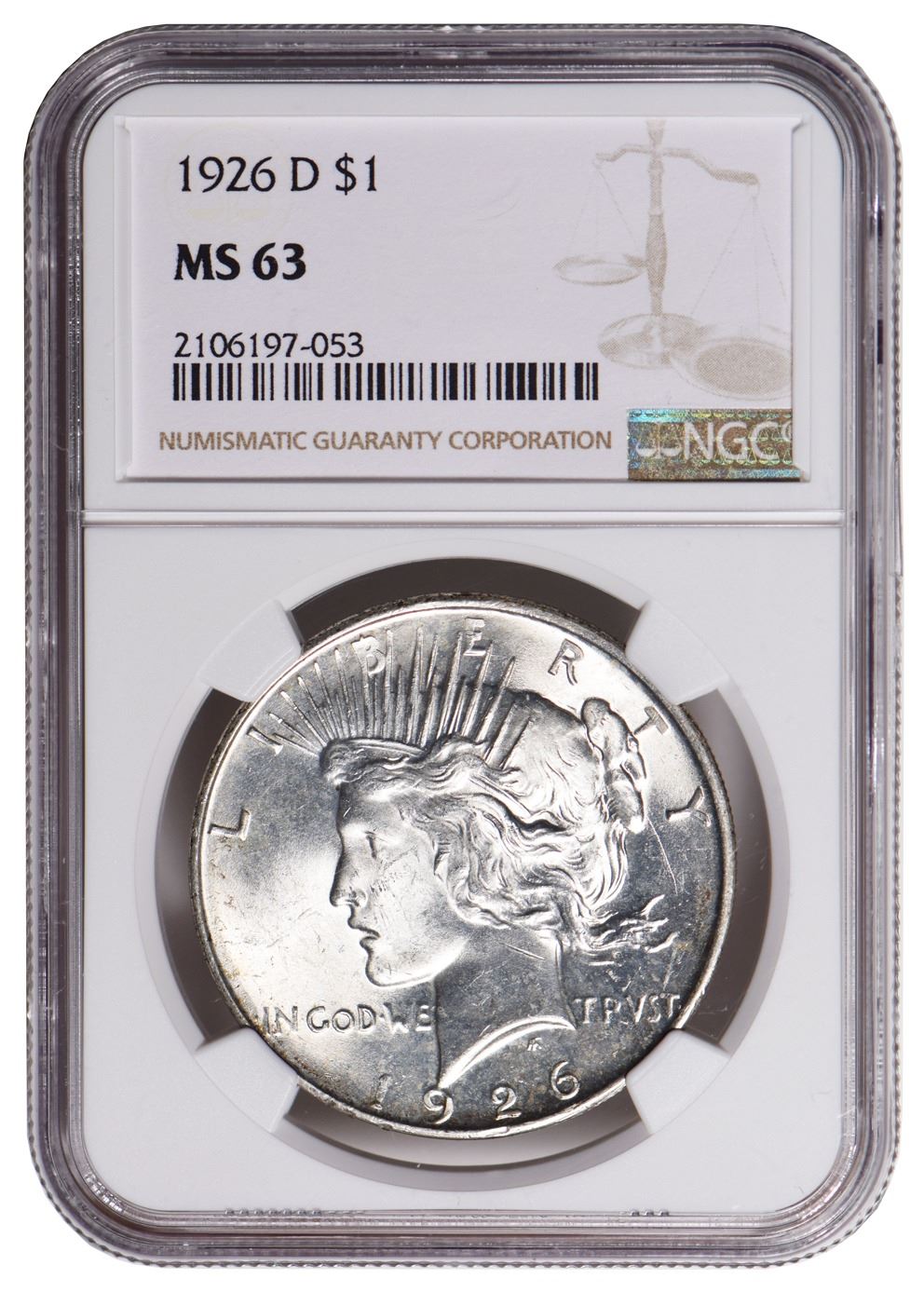 One 1926-D $1 Peace Dollar NGC MS63.