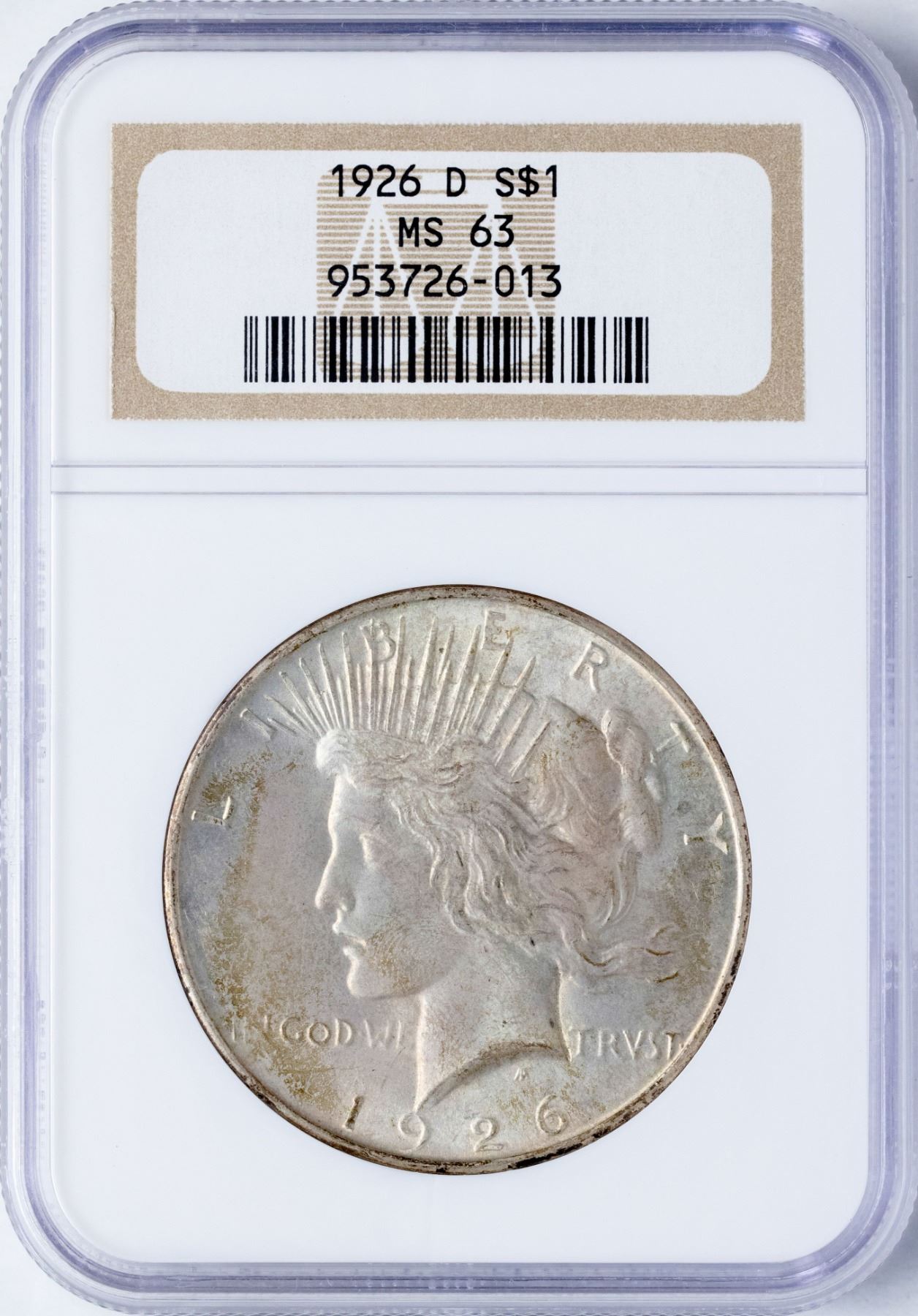 One 1926-D $1 Peace Silver Dollar Coin NGC MS63.