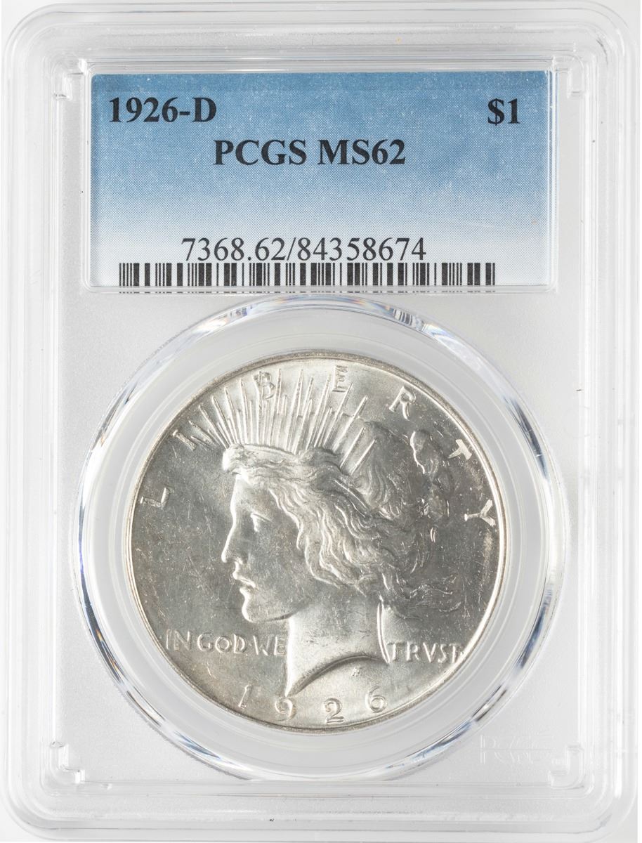 One 1926-D $1 Peace Silver Dollar Coin PCGS MS62.