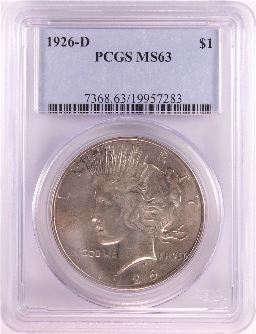 One 1926-D $1 Peace Silver Dollar Coin PCGS MS63. PCGS Graded.
