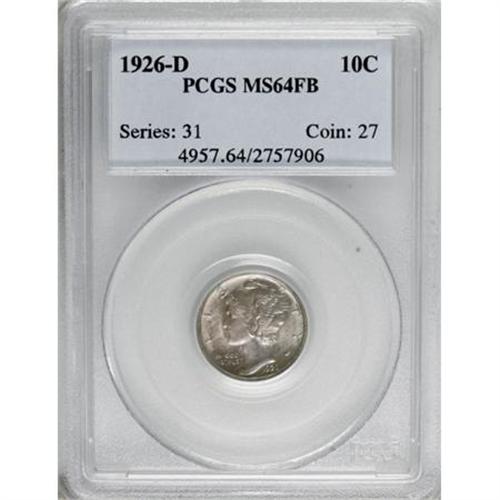 <B>1926-D 10C MS64 Full Bands PCGS.</B></I> Lovely pastel rose-gray toning across the centers yields to sky-blue and pale golden iridescence near the peripheries. Boldly struck with appealing luster and just a few tiny nicks on the fasces that seem to limit the grade. <BR><BR><b>Shipping:</b> Coins & Currency (<a target="_blank" href="http://www.heritageauctions.com/common/shipping.php">view shipping information</a>)