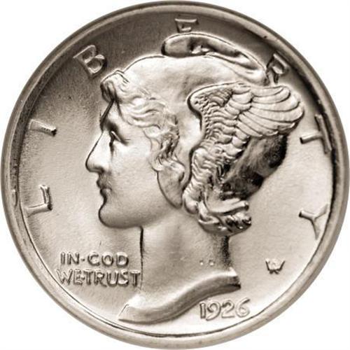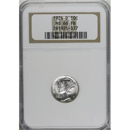 <B>1926-D 10C MS66 Full Bands NGC.</B></I> David Lange (2005) writes of the 1926-D dime: "Finding one with both full bands and a fully struck legend UNITED STATES OF AMERICA will be challenging." This Premium Gem comes very close to attaining this goal: a well executed strike transcends the Full Bands to bring strong definition to all of the design elements, with the exception of minor softness in the outer parts of the letters in AMERICA. Further enhancing this coin's eye appeal is the bright luster and well preserved, essentially untoned surfaces. Census: 7 in 66, 0 finer (8/07).<BR><BR><B>Coin Engraver:</B> Adolph A. Weinman<BR><BR><b>Shipping:</b> Coins & Currency (<a target="_blank" href="http://www.heritageauctions.com/common/shipping.php">view shipping information</a>)
