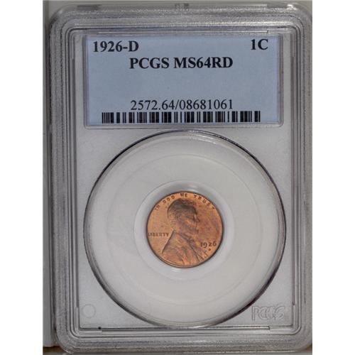 <B>1926-D<1C> MS64 Red PCGS.</B></I> A blazing near-Gem with original copper-red surfaces and satiny luster. This piece is quite sharply defined, considering the Denver Mint's lack of quality control at the time.