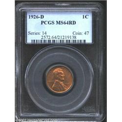 1926-D 1C MS64 Red PCGS. A copper-red, lustrous, and well defined Lincoln Cent. The strike is bold..