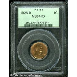 1926-D 1C MS64 Red PCGS. Lustrous with especially <B>1926-D 1C MS64 Red PCGS.</B></I> Lustrous with especially sharp definition for this conditionally elusive D-mint Lincoln. Slight weakness is apparent on AM, but there are no abrasions on either side, just a few scattered flyspecks.<BR><I>From The Dennis Dewart Collection.</B></I> <BR><BR><B>Important notice:</B> Heritage usually auctions material at the rate of 200-250 lots per hour. On some occasions eBay Live bid software or the Internet may not be able to keep up with the pace of the auction. We recommend placing a realistic absentee bid now as insurance to avoid disappointment. Occasionally the auctioneer may eliminate or reject an eBay Live bid, and the auctioneer may also reopen a lot after the close of the eBay live bidding (usually because we missed an audience bid), and may reject your bid even if it shows you as the winning bidder. By bidding via eBay Live, you agree that Heritage may award the lot to another bidder at its sole discretion under the circumstances described above or any other reasonable circumstances. Since eBay bids are not shown to us until we open the lot on the floor, we treat those bids just like floor bids. In most cases the floor responds before the eBay bid is presented to us, due to Internet lag time, so for consistency we have made it a policy that floor bids are always considered first over tie eBay live bids. Also please note that all Heritage lots purchased through eBay Live carry a 20% Buyer's Premium. Please make sure you read the Terms and Conditions before you bid. This lot is being auctioned in conjunction with a live floor auction by Heritage Galleries & Auctioneers. All final auction and invoice information will be supplied by Heritage Galleries & Auctioneers, and all other information should be considered preliminary. Lot:5160