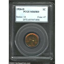 1926-D 1C MS65 Red PCGS. This specimen is a two-toned rosy red color, with a very sharp strike for t