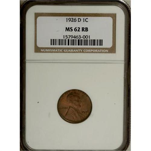 <B>1926-D 1C MS62 Red and Brown NGC.</B></I> . NGC Census: (17/138). PCGS Population (18/212). Mintage: 28,020,000. Numismedia Wsl. Price for NGC/PCGS coin in MS62: $77. (#2571)<BR><BR><B>Coin Engraver:</B> Victor D. Brenner<BR><BR><b>Shipping:</b> Coins & Currency (<a target="_blank" href="http://www.heritageauctions.com/common/shipping.php">view shipping information</a>)