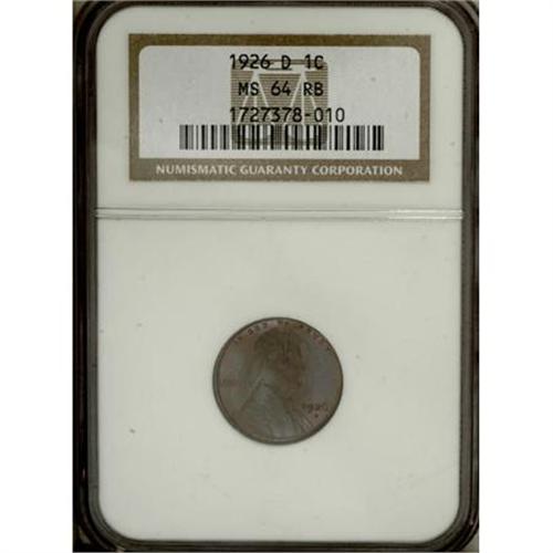 <B>1926-D 1C MS64 Red and Brown NGC.</B></I> NGC Census: (80/25). PCGS Population (121/16). Mintage: 28,020,000. Numismedia Wsl. Price for NGC/PCGS coin in MS64: $175. (#2571)<BR><BR><B>Coin Engraver:</B> Victor D. Brenner<BR><BR><b>Shipping:</b> Coins & Currency (<a target="_blank" href="http://www.heritageauctions.com/common/shipping.php">view shipping information</a>)