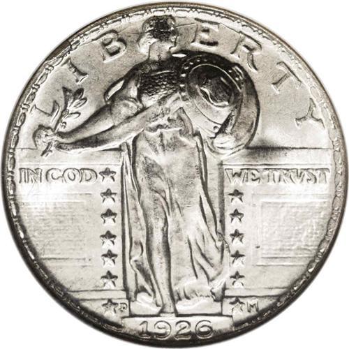 <B>1926-D<25C> MS65 NGC.</B></I> Frosty-white surfaces are a trifle mushy on the highpoints, but still well above average for this famously ill-defined issue.