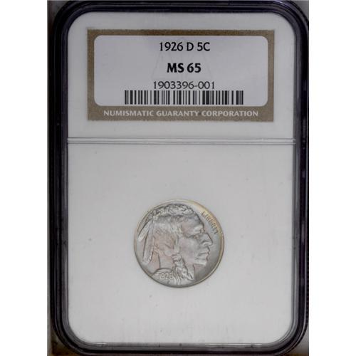 <B>1926-D<5C> MS65 NGC.</B></I> This is a remarkable Gem example with satiny luster and exquisite toning. Both sides have vivid blue, lilac, and gold color. Although finer grade pieces exist, few can equal this example for sharpness of strike or for overall aesthetic appeal. <BR><BR><B>Important notice:</B> Heritage usually auctions material at the rate of 200-250 lots per hour. On some occasions eBay Live bid software or the Internet may not be able to keep up with the pace of the auction. We recommend placing a realistic absentee bid now as insurance to avoid disappointment. Occasionally the auctioneer may eliminate or reject an eBay Live bid, and the auctioneer may also reopen a lot after the close of the eBay live bidding (usually because we missed an audience bid), and may reject your bid even if it shows you as the winning bidder. By bidding via eBay Live, you agree that Heritage may award the lot to another bidder at its sole discretion under the circumstances described above or any other reasonable circumstances. Since eBay bids are not shown to us until we open the lot on the floor, we treat those bids just like floor bids. In most cases the floor responds before the eBay bid is presented to us, due to Internet lag time, so for consistency we have made it a policy that floor bids are always considered first over tie eBay live bids. Also please note that all Heritage lots purchased through eBay Live carry a 20% Buyer's Premium. Please make sure you read the Terms and Conditions before you bid. This lot is being auctioned in conjunction with a live floor auction by Heritage Galleries & Auctioneers. All final auction and invoice information will be supplied by Heritage Galleries & Auctioneers, and all other information should be considered preliminary. Lot:1095 <BR><BR><B>Winning Notification and Billing:</B> After the FINAL session in this auction is complete, Heritage will send e-mail and snail mail invoices. This process normally takes several days. All final auction and invoice information will be supplied by Heritage Galleries & Auctioneers, and all other information should be considered preliminary. <BR><BR>This auction will be conducted on a live auction floor and over the Internet through eBay Live. If you choose to place an absentee bid, please take a moment to <font color='#0000ff'><u><a href='http://pages.ebay.com/liveauctions/help/before/laabsentee.html'>learn how eBay Live absentee bidding works</a></u></font><font color='#000000'>