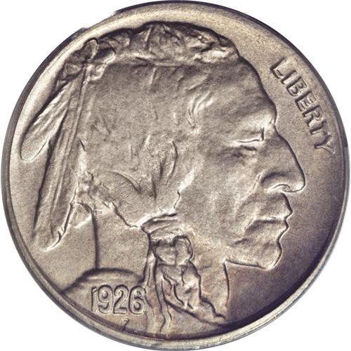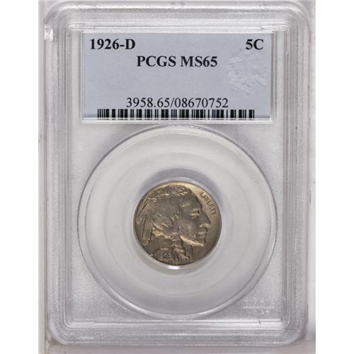 <B>1926-D<5C> MS65 PCGS.</B></I> A sharply detailed Gem that displays satiny luster beneath gray-gold and lilac toning. The typical 1926-D Buffalo nickel features quite a weak or mushy strike, but this example is an exception. Population: 75 in 65, 19 finer (7/06).
