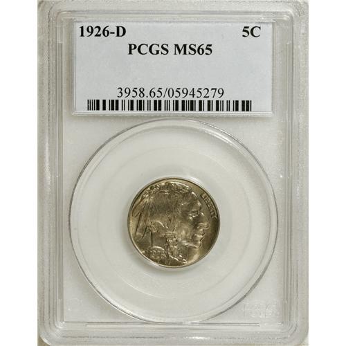 <B>1926-D 5C MS65 PCGS.</B></I> The main question when considering a Mint State 1926-D is the degree of strike. The answer seen on this coin is: very close. In fact, the strength of strike seen on this piece is one of the main features, along with the bright, satiny mint luster. Pale rose and lilac toning is draped over each side, and there are numerous tiny flyspecks of carbon present. Population: 80 in 65, 24 finer (3/07).<BR><BR><b>Shipping:</b> Coins & Currency (<a target="_blank" href="http://www.heritageauctions.com/common/shipping.php">view shipping information</a>)