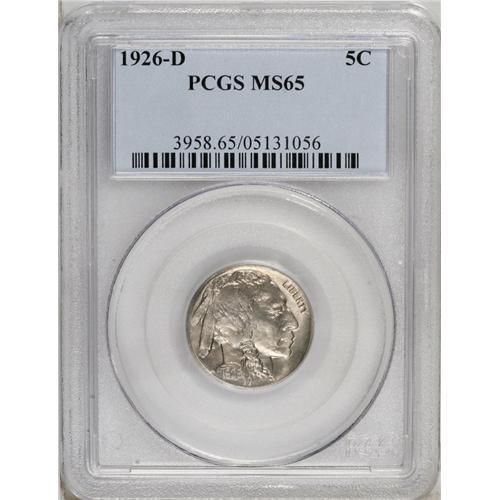 <B>1926-D 5C MS65 PCGS.</B></I> Vibrant luster illuminates cherry-red and lime fields. The mintmark is bold, and the devices are generally crisp for the issue. Only inconsequential carbon flecks limit the grade. The 1926-S is another conditionally challenging and lower mintage branch mint issue from the 1920s. Population: 80 in 65, 20 finer (10/06).<BR><BR><b>Shipping:</b> Coin/Currency (<a target="_blank" href="http://www.heritageauctions.com/common/shipping.php">view shipping information</a>)