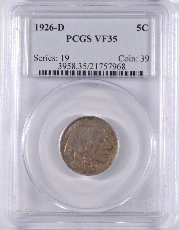 1926-D BUFFALO NICKEL, PCGS VF-35 NICE STRIKE FOR THIS DATE!