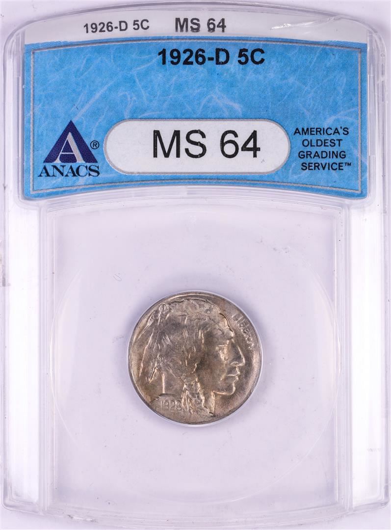 One 1926-D Buffalo Nickel Coin ANACS MS64. ANACS Certified.