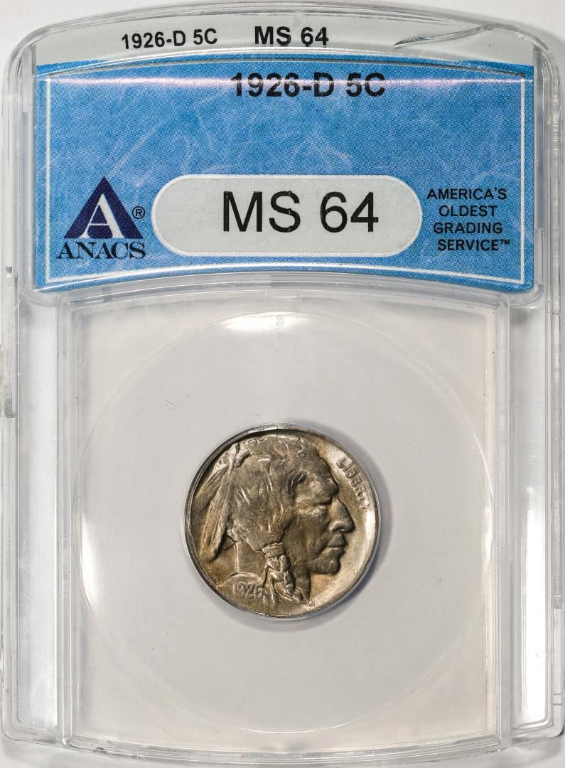 One 1926-D Buffalo Nickel Coin ANACS MS64. ANACS Certified.