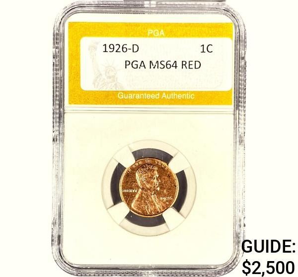 1926-D Lincoln Wheat Cent PGA MS64 RED