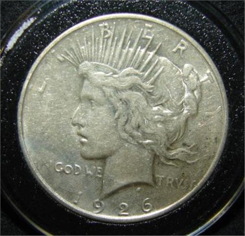 1926-D U.S. PEACE DOLLAR. Coin is in circular case.