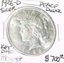 1926-D PEACE SILVER DOLAR RED BOOK VALUE IS $700.00 *EXTREMELY RARE KEY DATE MS-64+ HIGH GRADE*!! ***Coin, Currency & All Items Listed in this auction - Grades, Conditions and Values are not Safe Deposit Coins LLC Responsibilty. Grades, Condition and Values are determined by Consigner(s) & Buyers ONLY