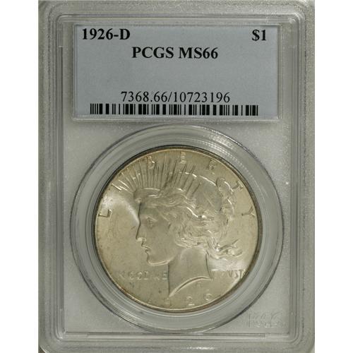 <B>1926-D S$1 MS66 PCGS.</B></I> Delicate olive and pearl-gray enliven this intricately struck and refreshingly smooth Premium Gem. This beautiful piece is worthy of the finest quality collection.<BR><BR><b>Shipping:</b> Coins & Currency (<a target="_blank" href="http://www.heritageauctions.com/common/shipping.php">view shipping information</a>)